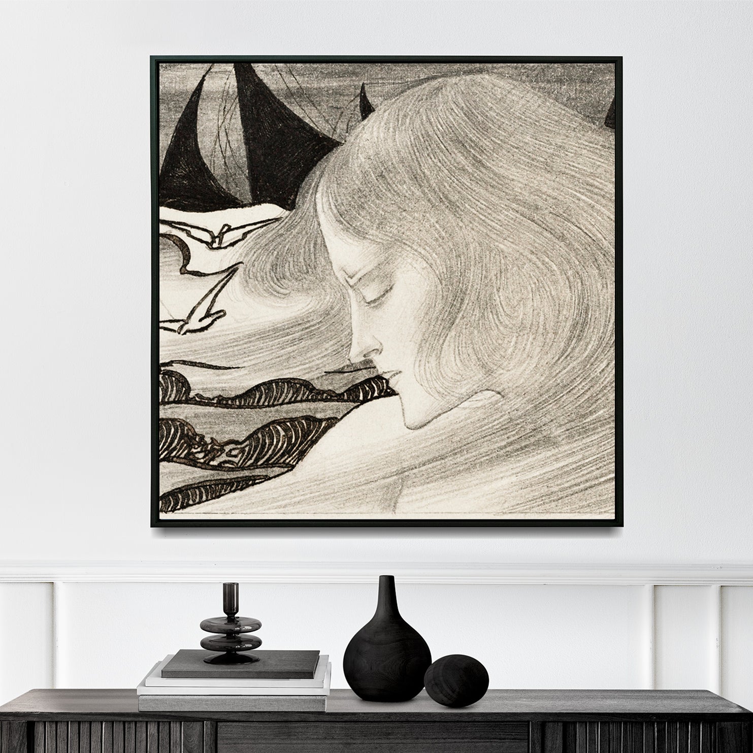 Young Woman with Wavy Hair in Front of a Sea with Ships (1900) | Jan Toorop | Premium Fine Art Print | 19th Century Dutch | Art Nouveau | Art | Vintage | Portrait