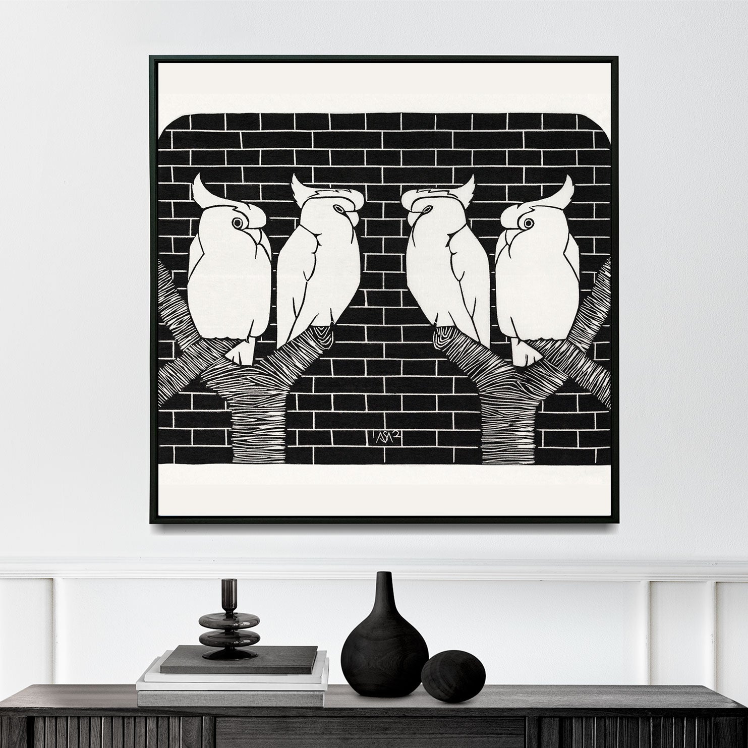 Four Crowned Cockatoos (Vier kroonkaketoes) (1912) | Samuel Jessurun | Premium Fine Art Print | 20th Century Dutch | Woodblock | Art | Vintage | Portrait | Nature Art