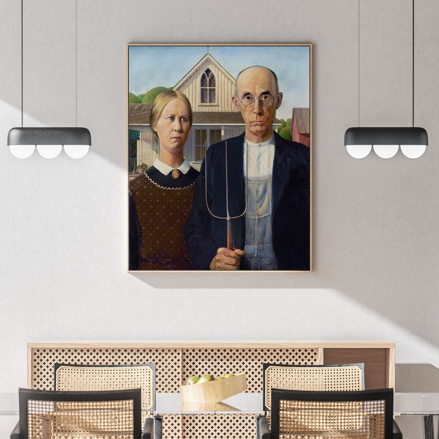American Gothic (1930) | Grant Wood | Premium Fine Art Print | 20th Century American | Regionalism | Art | Vintage | Portrait | Architecture