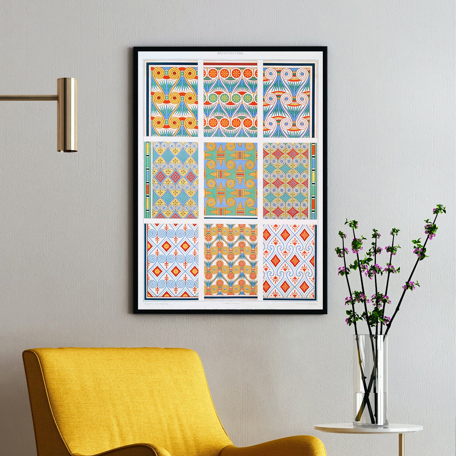 Ceiling Ornamentation : Flowered Posts (Theban Necropolis) (1878) | Émile Prisse d'Avennes | Premium Fine Art Print | 20th Century French | Symbolish | Art | Vintage | Pattern