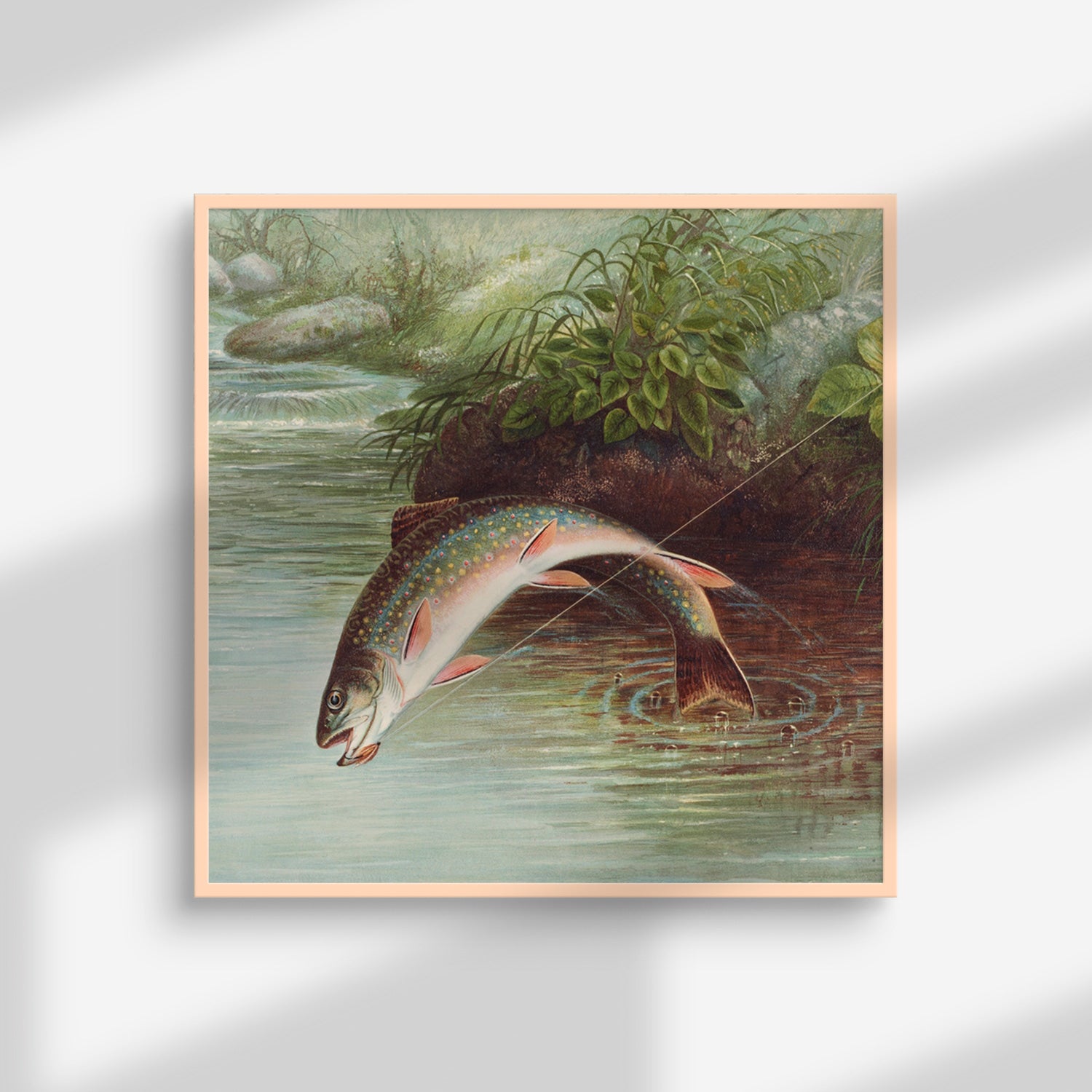 Leaping Brook Trout Chromolithograph (1874) | Samuel Kilbourne | Premium Fine Art Print | 19th Century American | Marine-fish, Landscape, Wildlife | Art | Vintage | Portrait | Nature Art