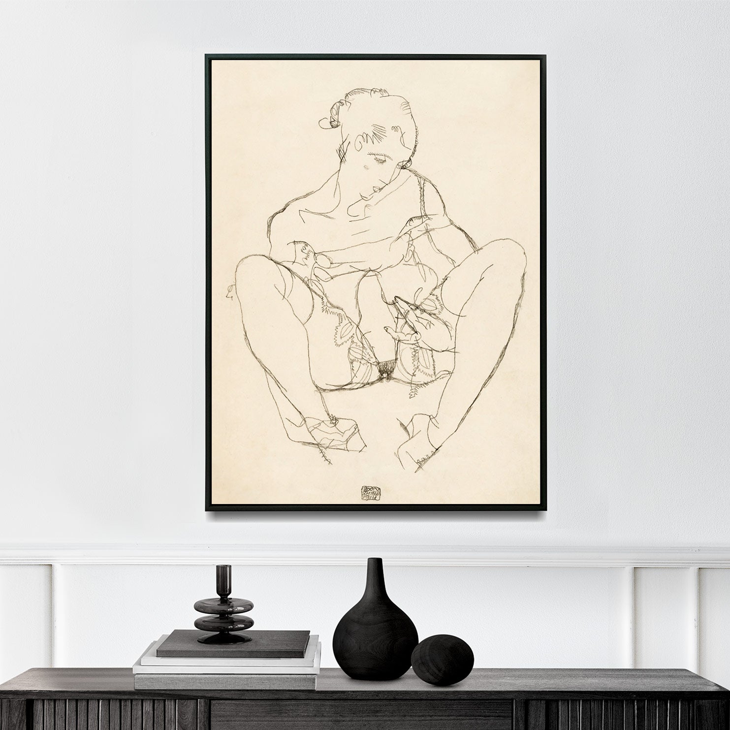 Woman Spreading Legs. Seated Woman in Chemise (1914) | Egon Schiele | Premium Fine Art Print | 20h Century Austrian | Expressionism, Art Nouveau, Impressionism, Symbolism, Modernism | Art | Vintage | Portrait