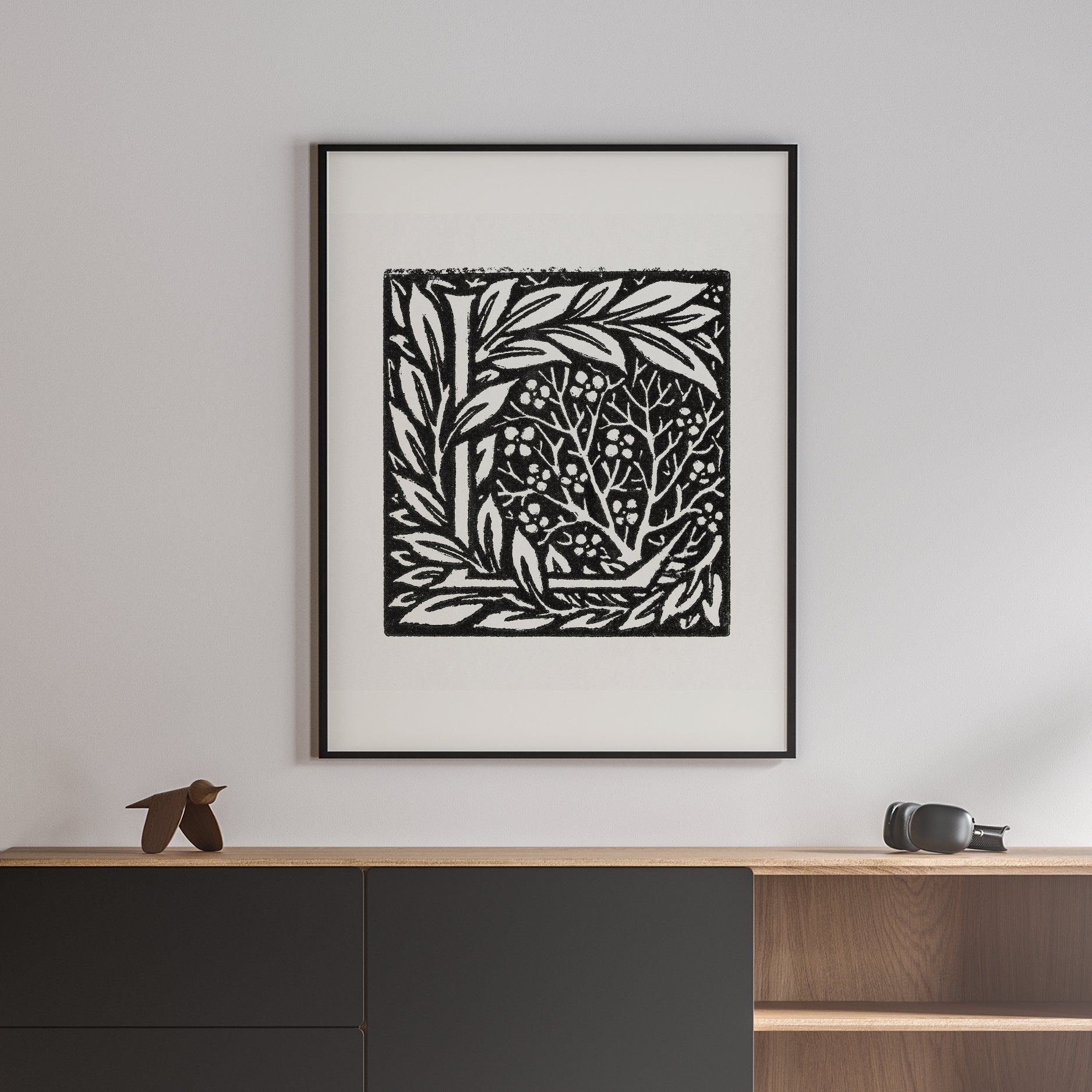 Love is Enough - Initial letter 'L' entwined with Laurel Leaves (1866–1867) | William Morris | Premium Fine Art Print | 19th Century British | Arts and Crafts | Art | Vintage | Botanical | Plant Art | Nature art